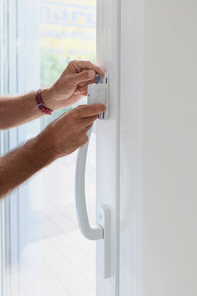 Ihre Hebe- und Hebe-Schiebe-Türen aus Aluminium, Holz oder Kunststoff lassen sich mit dieser Sicherung zuverlässig vor Einbrechern und unbedarften Kinderhänden schützen. Die Sicherung umfasst einen Kipphebel, um das seitliche Wegdrücken zu verhindern. Zudem kommt eine Qualitäts-4-Stift-Zylinder-Technik zum Einsatz, die bei solchen Fenstersicherungen für zusätzliche Sicherheit sorgt. Verriegelt wird die Zusatzsicherung durch einfaches Herunterdrücken. Öffnen lässt sie sich nur mit einem Schlüssel.