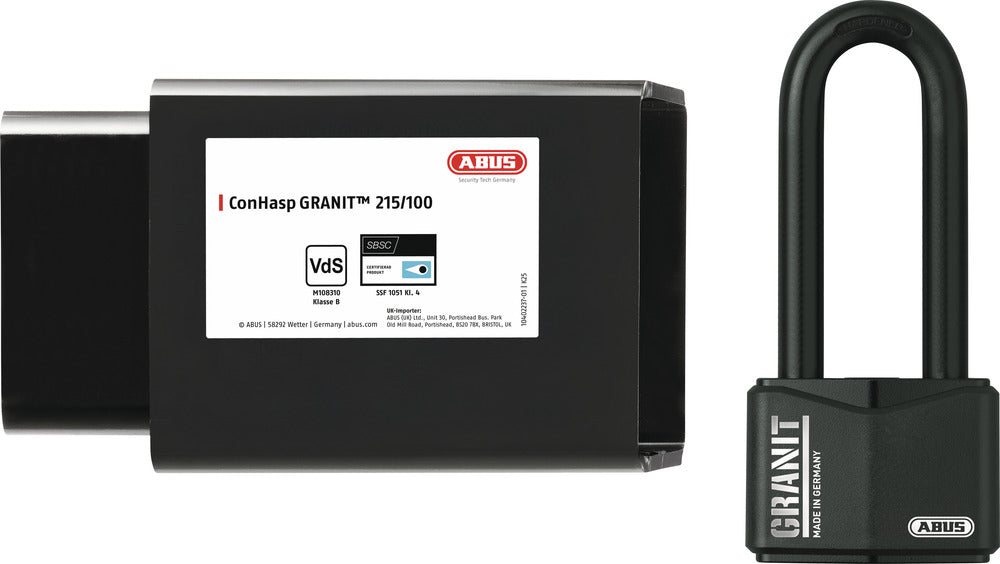 - VdS 3503 (Klasse B) und SSF 1051 (Klasse 4)-anerkannt: Das gilt für ConHasp GRANIT™ 215/100 + Vorhängeschlösser 37RK/70HB100