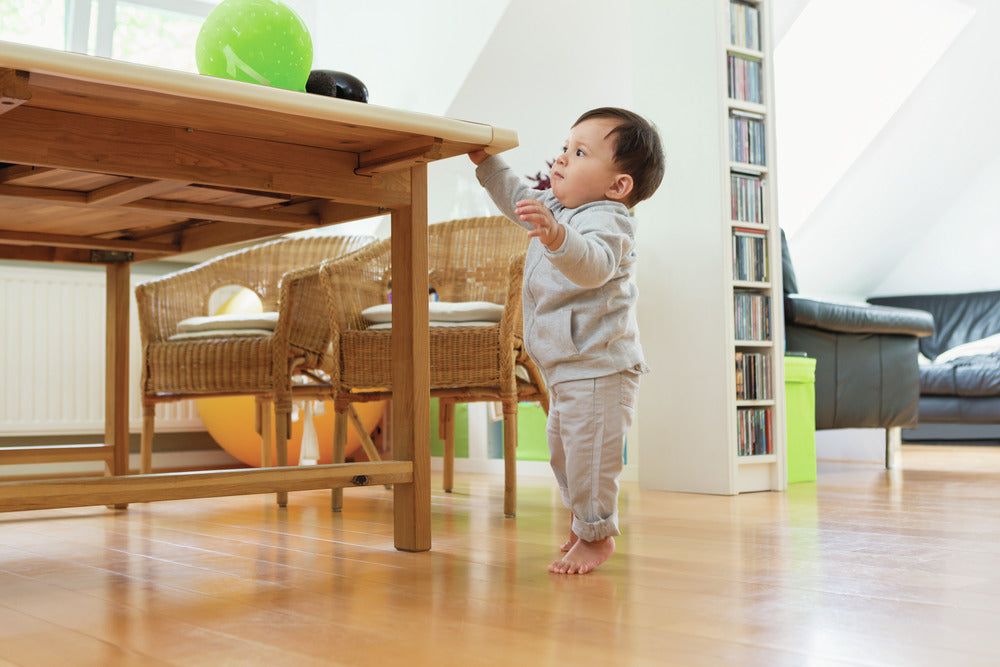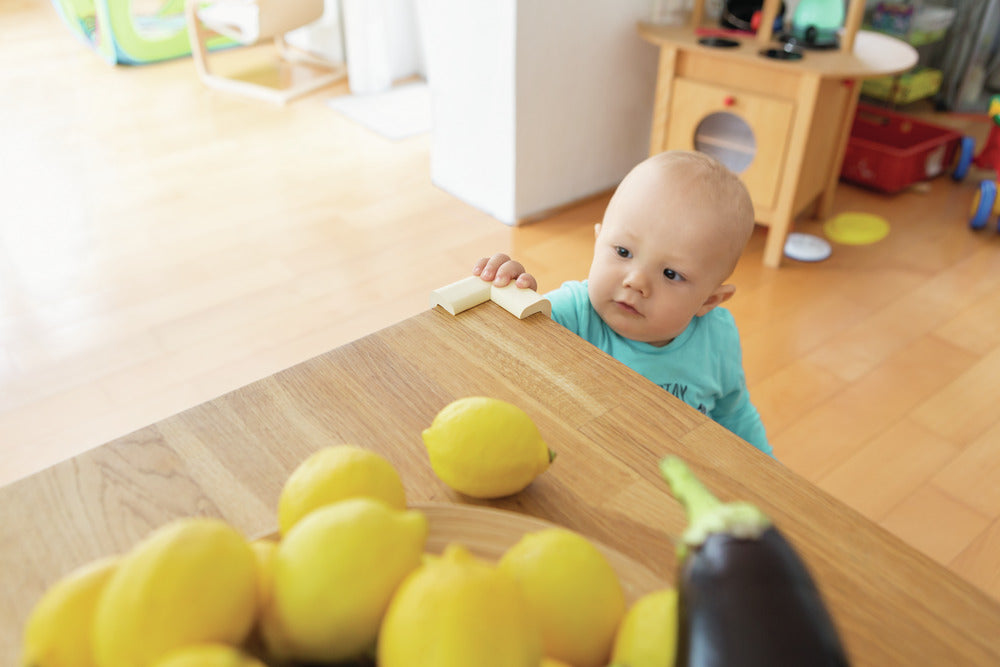 Tischkanten, Kommodenecken und andere Stellen mit Eckenschutz JANNIC von ABUS sichern.