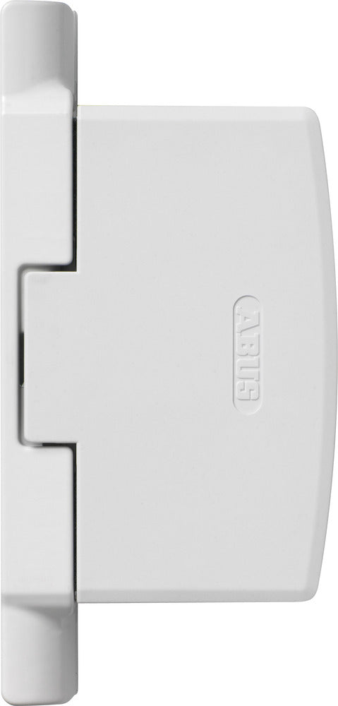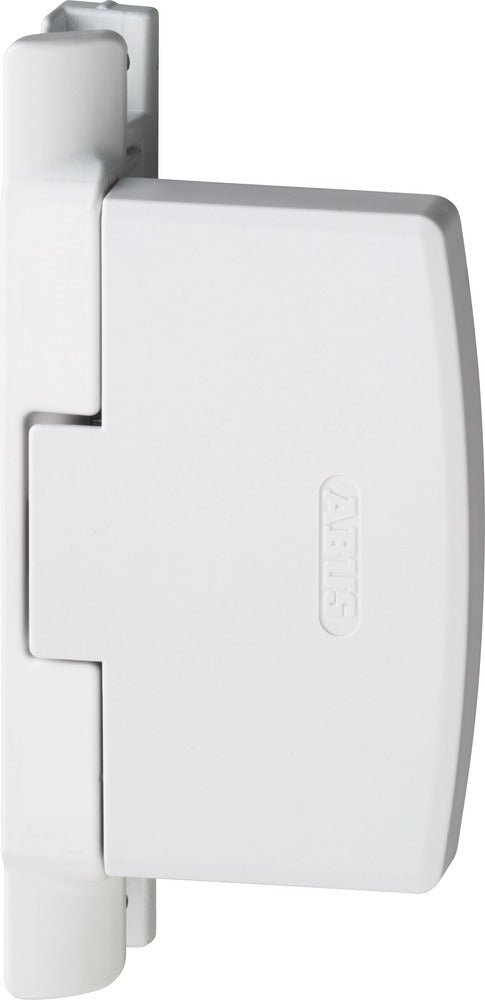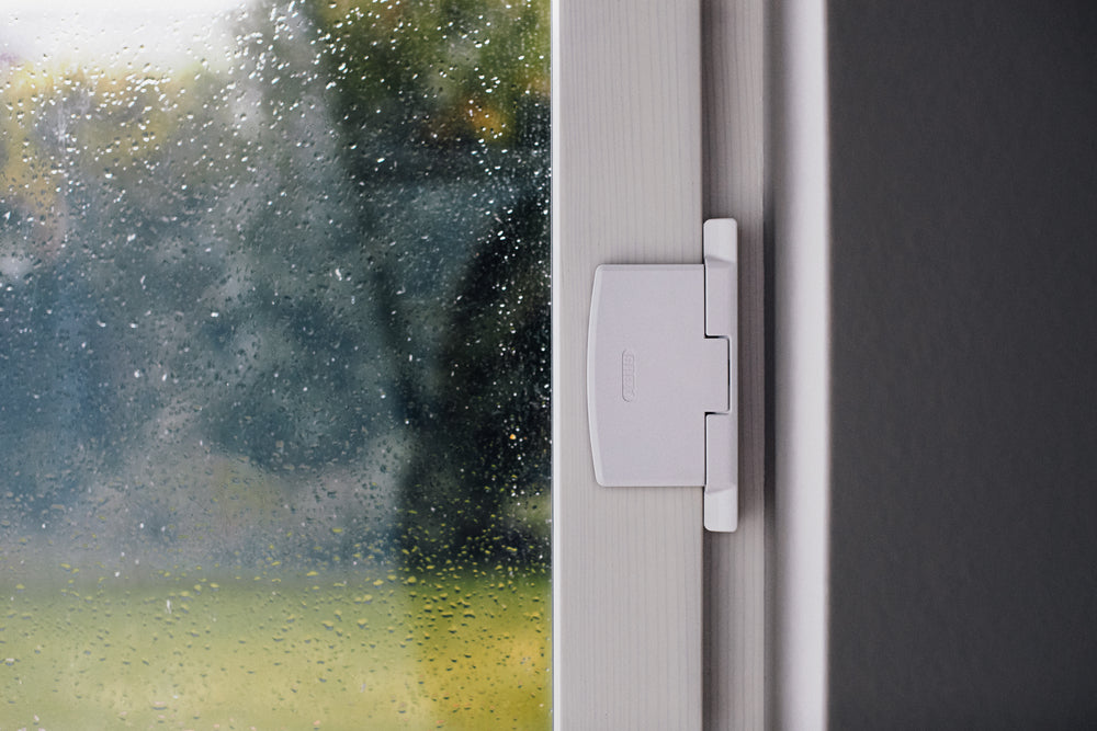 Fenster-Zusatzsicherung von ABUS zur Absicherung der Scharnierseite mit automatischer Verriegelung.