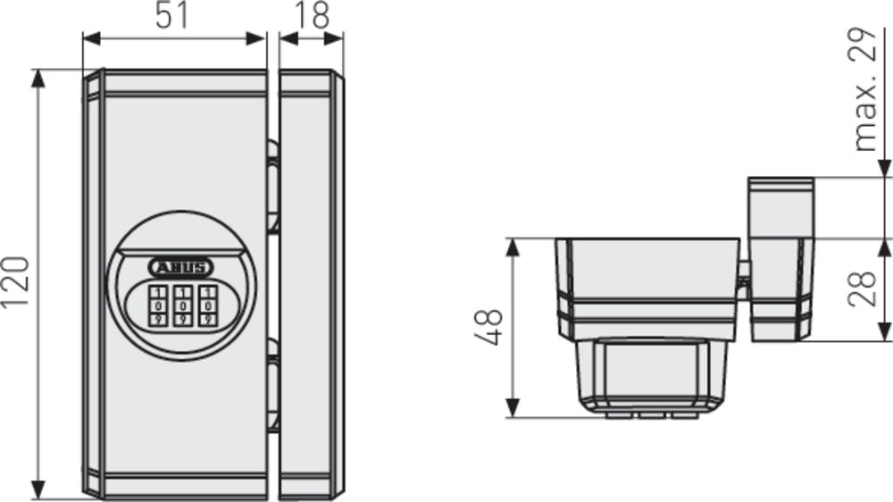 - Bedienung ohne Schlüssel: Verschluss per Zahlenkombination, Öffnen mittels Drehknauf
