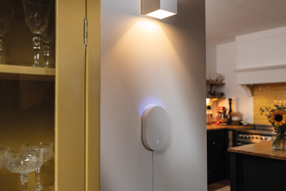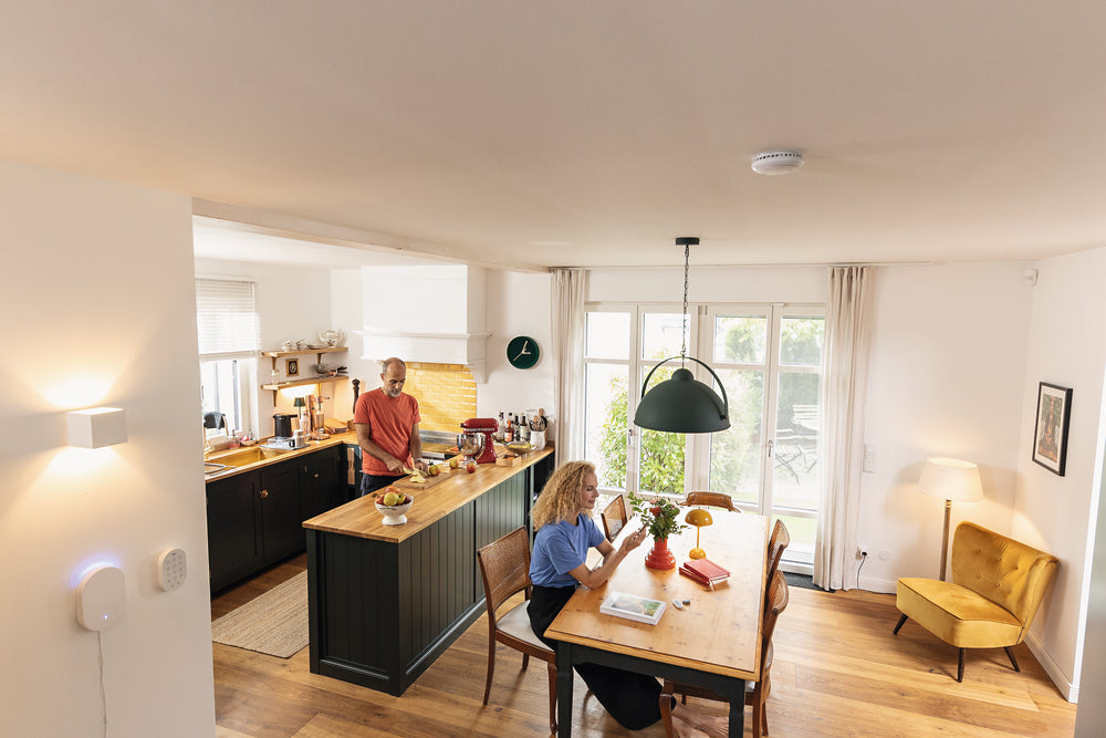 Alle Geräte sind im Handumdrehen installiert, denn sie kommunizieren kabellos miteinander. Die Zentrale benötigt lediglich eine freie Steckdose. Das zeitlose Design fügt sich in jedes Wohnambiente nahtlos ein.