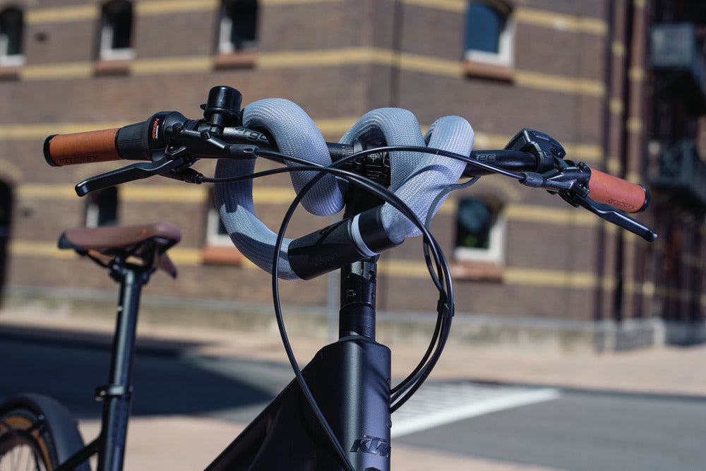 Elegant schmiegt sich das ABUS Fahrradschloss Goose Lock um den Fahrradrahmen und bleibt dabei sogar in der gewünschten Form.