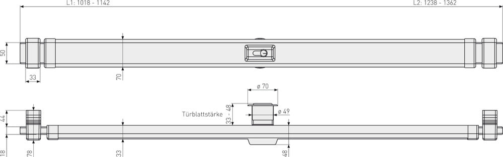 - Für Türblattbreiten von 735 - 980mm (L1) und 980 - 1.200mm (L2)