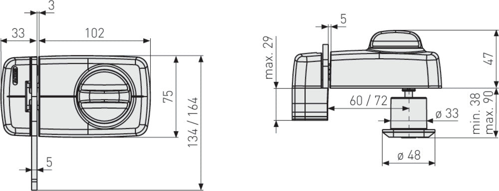- Von innen komfortable Bedienung über Drehknauf, ohne Schlüssel